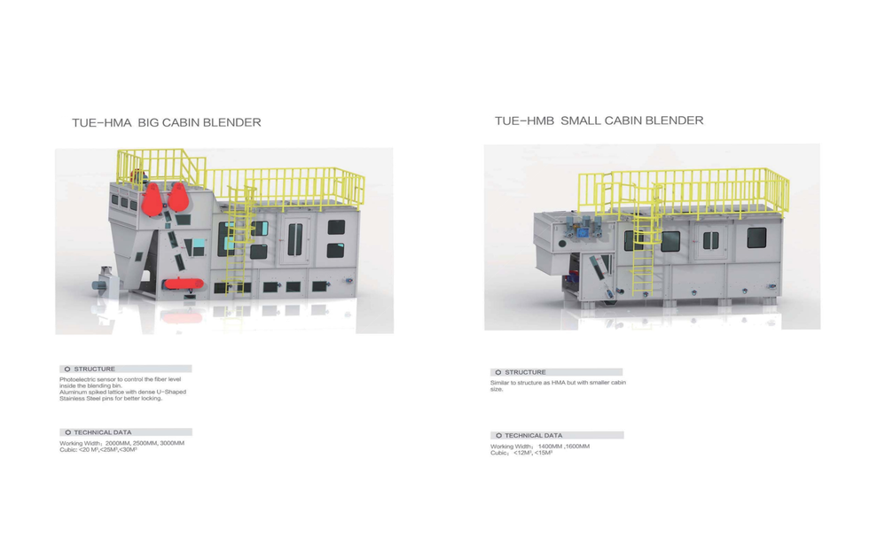 Opening and Blending represents a complete preliminary stage of the Nonwoven opening and blending line. It involves the complete package of the opening and dosing, mixing and blending of the fibers and then forwarding it to the next phase of Nonwoven. The fibers can be natural fibers like jute fibers, cotton, coconut fibers, hemp fibers etc. and the artificial fibers like polyester staple , polypropylene, low melt (bico), textile waste (shoddy fiber), viscose fibers, polyamide, nylon fibers, PPS, Pasho fibers etc.